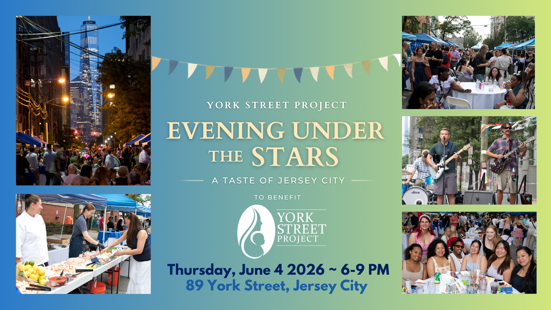 “Evening Under the Stars” is the best party in town, offering a variety of delicious small bites from all over Jersey City, unlimited drinks and fantastic live music – a guaranteed enjoyable experience! The best part? It all takes place on York Street, where impactful changes are made daily. Proceeds from this event support the mission of the York Street Project, funding innovative programs that provide shelter, food, education, healing and independence to those in need, with a focus on women, children and families. Since 1989, we have been dedicated to breaking the cycle of poverty.